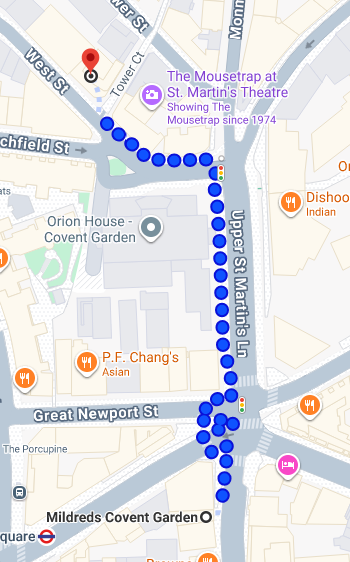 After that we'll go to Mildred's Covent Garden. Table's booked for 5:45 which gives us over an hour to eat and then we can wander 5 minutes' walk to the theatre before the 8pm showtime.